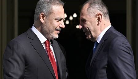 Πραγματοποιήθηκε σε καλό κλίμα η επίσκεψη του Τούρκου Υπουργού των Εξωτερικών κ, Φιντάν, στην Αθήνα. Και οι δυο υπουργοί προσπάθησαν να κρατήσουν τις συζητήσεις και τις δηλώσεις που ακολούθησαν σε ένα πολιτισμένο κι ευπρεπές κλίμα, που επιτρέπει τη διατήρηση του, που επιτρέπει τη συνέχεια των συζητήσεων και στον μέλλοντα χρόνο, χωρίς επανέναρξη των υπερπτήσεων και των παραβιάσεων εκ μέρους της Τουρκίας. Αυτό φανερώνει την πρόθεση της Τουρκίας να απαλύνει τη συμπεριφορά της και να εξομαλύνει τις σχέσεις της με την Αθήνα για μεγάλο χρονικό διάστημα.