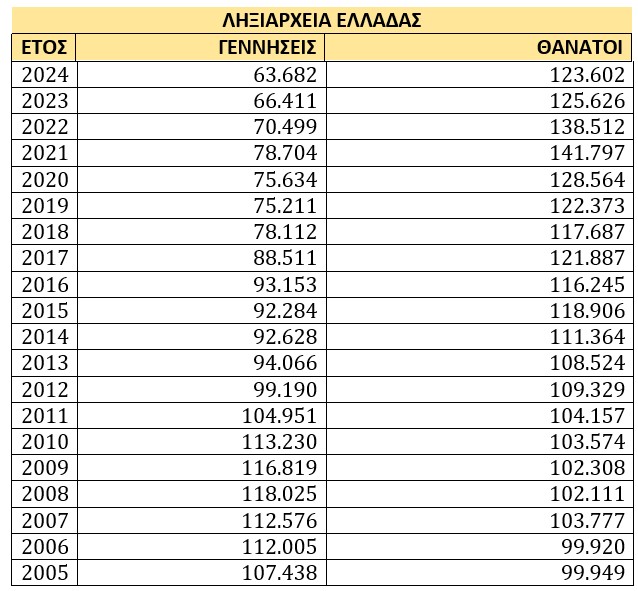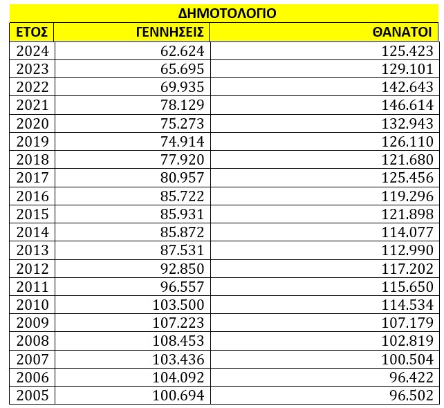 Γεννήσεις – θάνατοι από το Δημοτολόγιο (αφορά Έλληνες πολίτες):